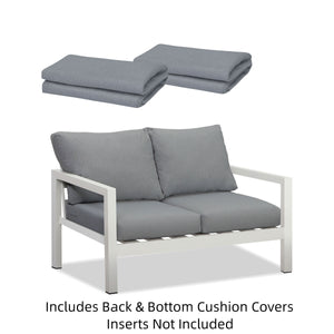 Grey Replacement Cushion Covers for Coogee Double Seater White Aluminium Outdoor Sofa Lounge with Arms (SKU: OD5600B-2DT-CVS)