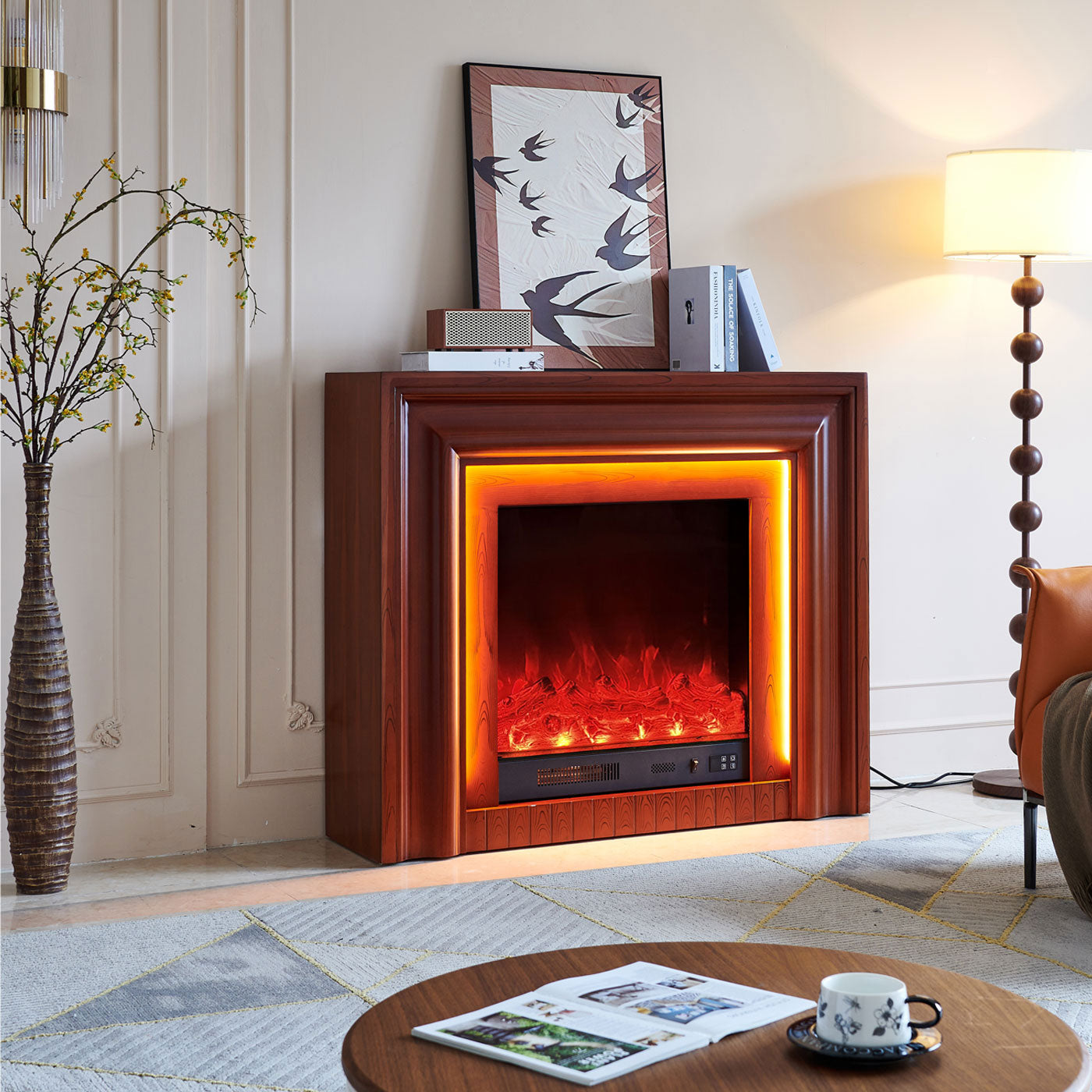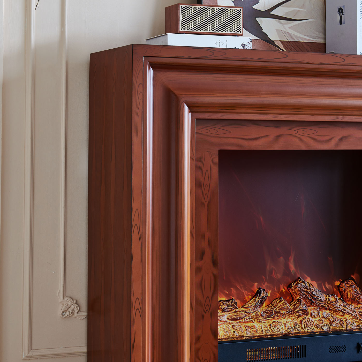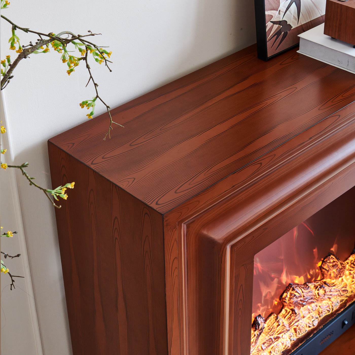 3D flame effect: Realistic flames create a cozy, authentic atmosphere.