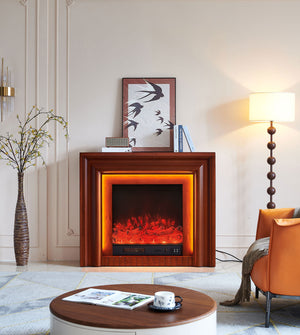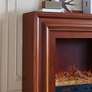 The Emerald electric fireplace suite blends classic design with modern technology. The beautifully crafted mantel, featuring smooth, curved edges and a rich brown wood grain finish, brings warmth and sophistication to any room. Equipped with a 1500W electric insert, this fireplace offers both powerful heating and aesthetic enhancement. The additional ambiance lighting, controlled by a switch at the top right of the mantel, further elevates the cozy atmosphere.