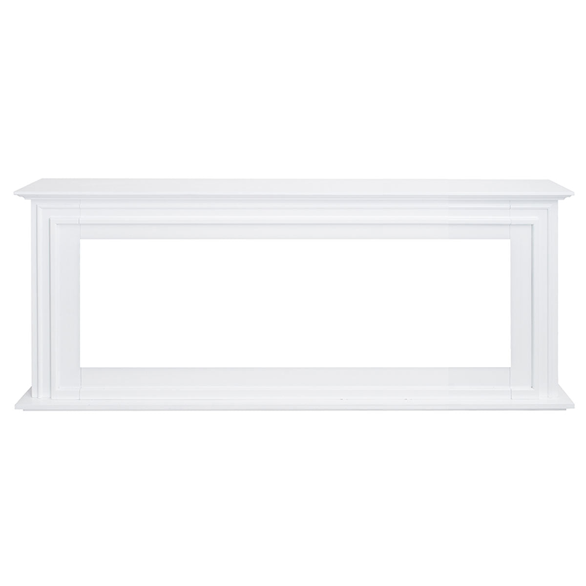 Create a modern focal point with the Eton White Fireplace Mantel. Made to pair with the 60 inch Concerto Fireplace, its low, wide design is perfect for TV placement and adds a built in look to your living space without major renovation.