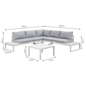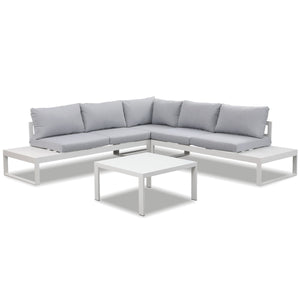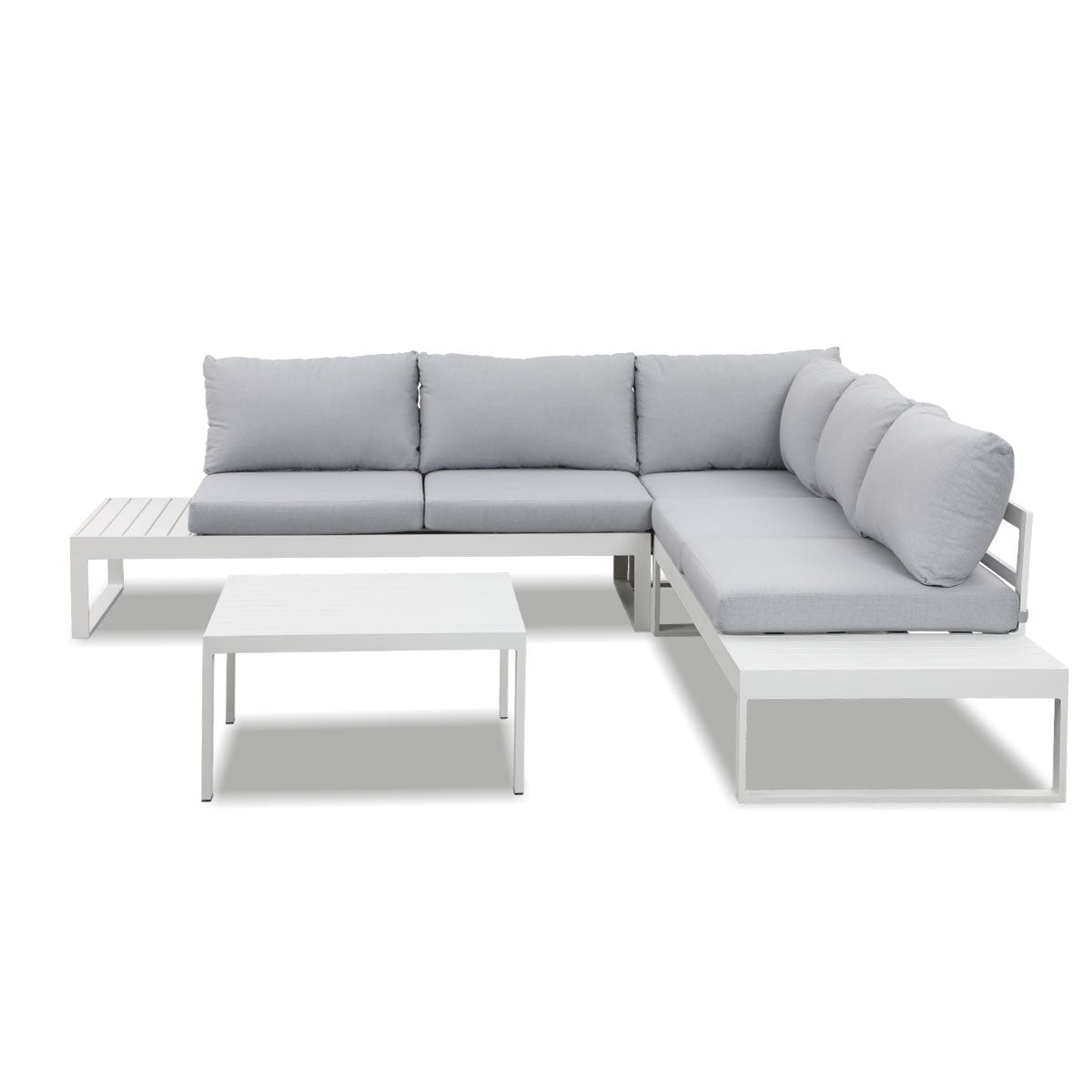 Hampton White Aluminium Sofa Lounge Set - Ash Grey Cushion