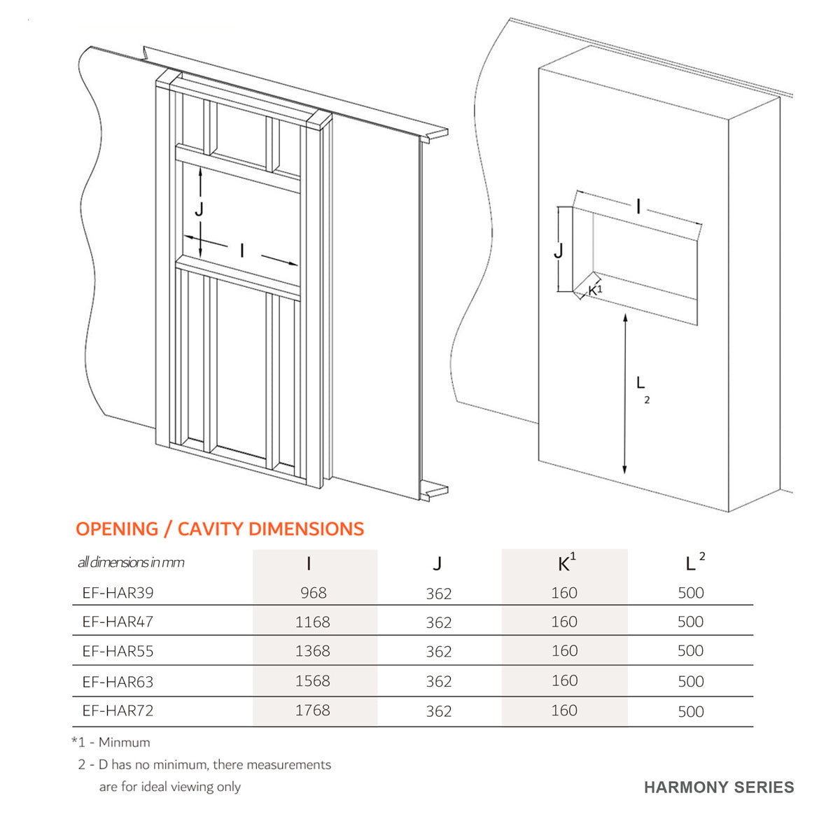 Harmony 1500W 55 inch Recessed / Wall Mounted Electric Fireplace