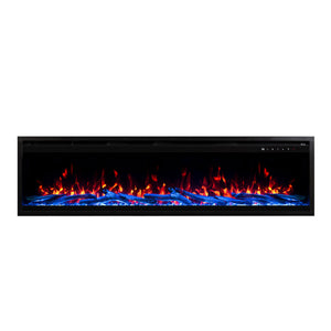 Enhance your space with the ultra-realistic 3D flame featuring 3 color options, a pulsating ember bed with 13 lighting colors, and 5 adjustable flame speeds. Enjoy full control through your smartphone app, remote, or touchscreen, and experience added ambiance with built-in crackling fire sounds. With dual heat settings (750W/1500W), an energy-efficient LED flame, and a sleek, space-saving design, this fireplace fits seamlessly into any room, offering comfort and style all year round—without the need for a flue. Perfect for modern living.