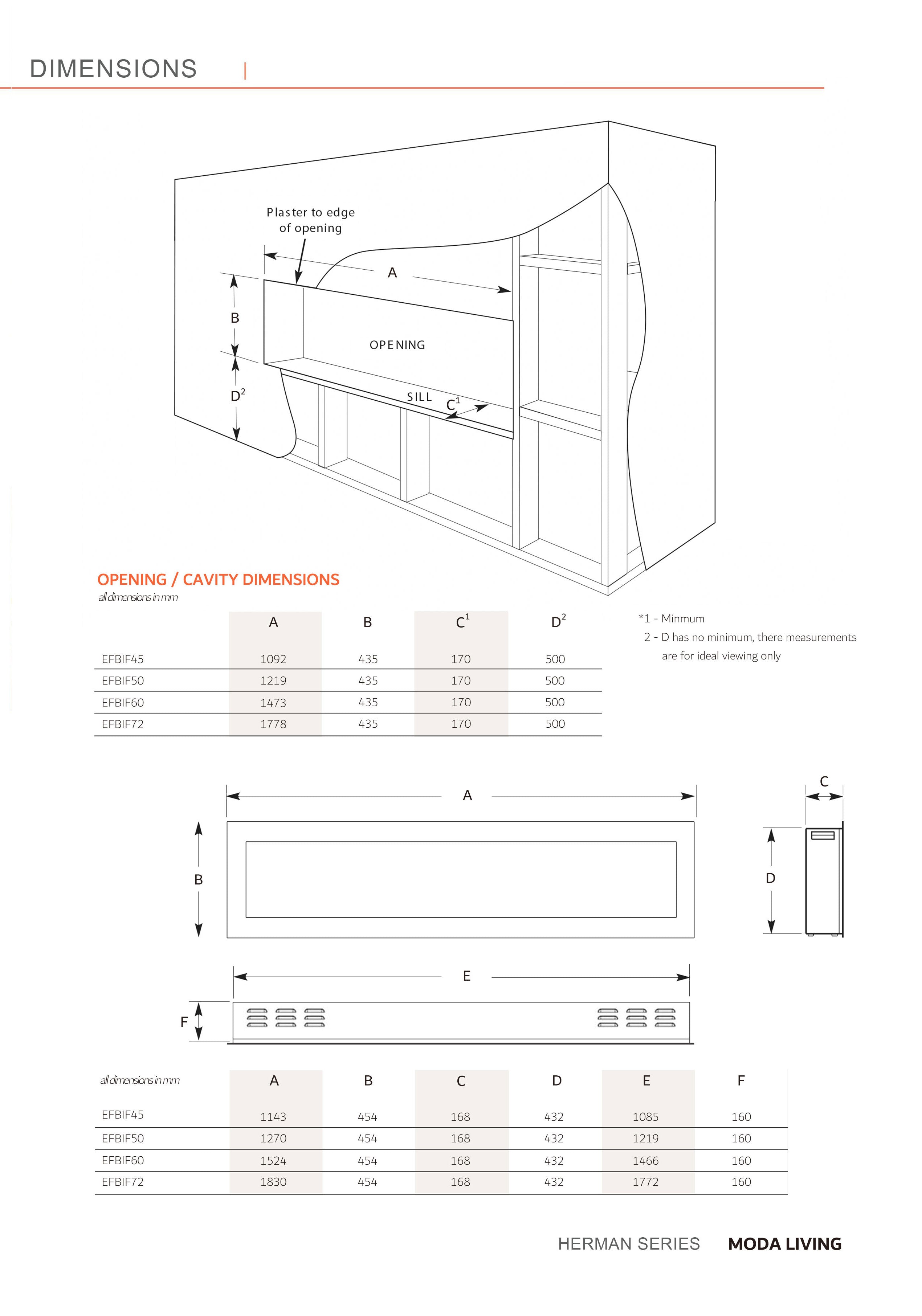 • Designed with front flow heating with hidden venting – vent is located at the top of the unit allowing heat to cascade down in front of the glass.