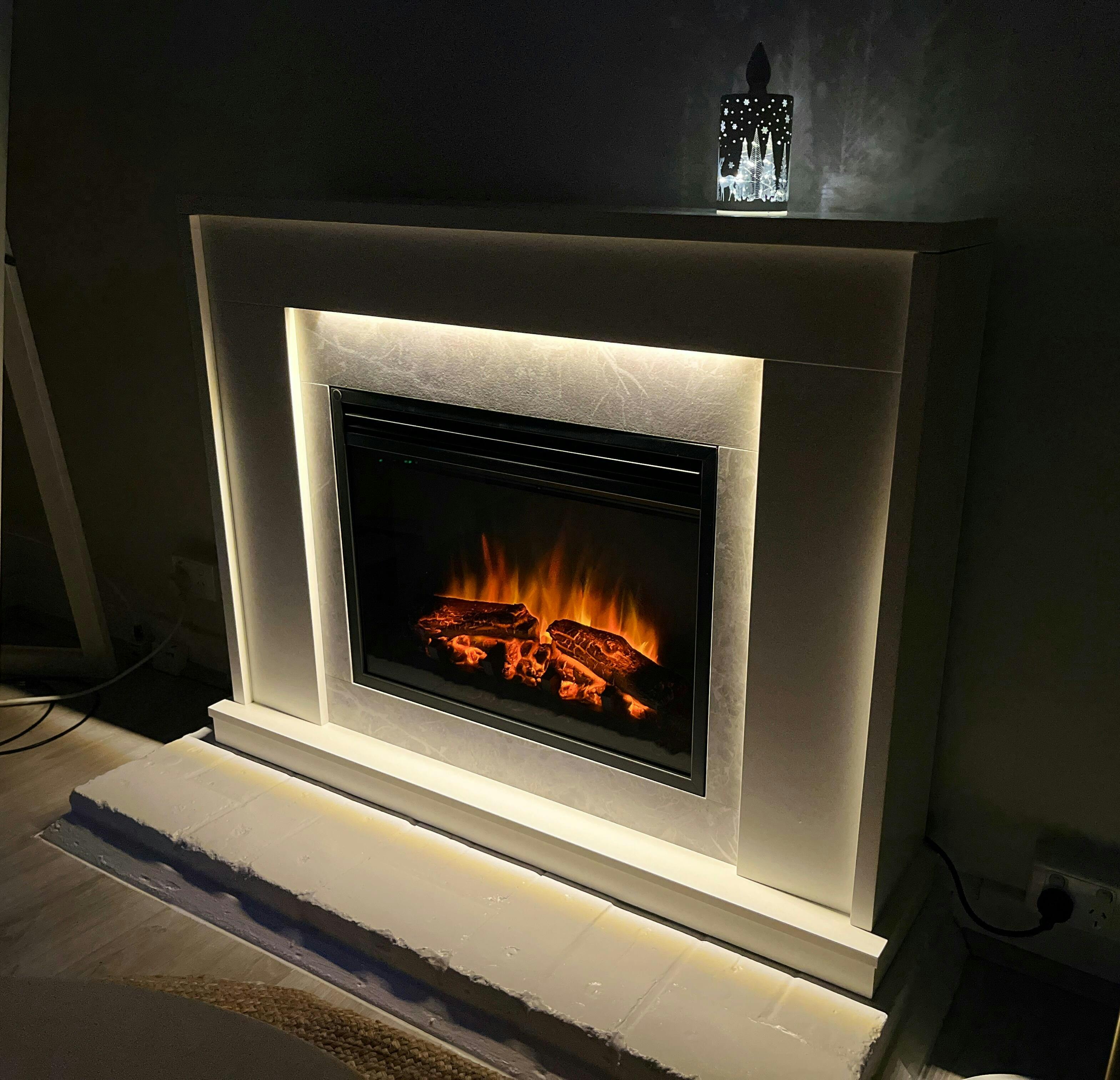 • Mood Lighting: The Jade mantel features integrated warm white LED mood lighting, adding an extra layer of ambiance. The mood lighting is dimmable and can be used with or without the heater, controlled via the Stella’s remote control.