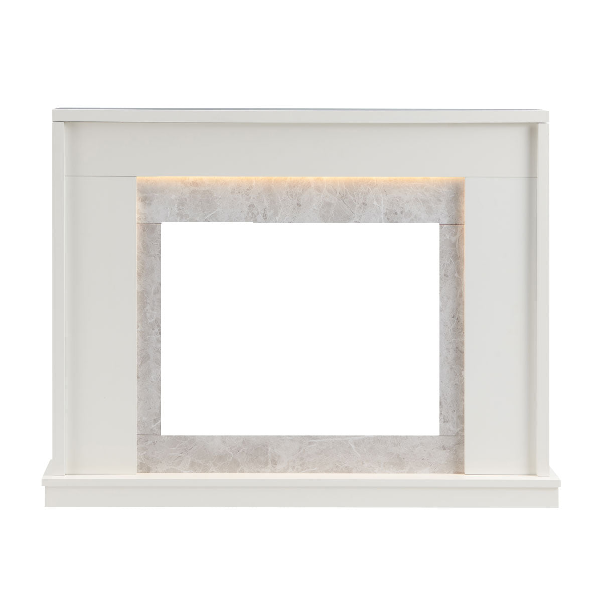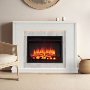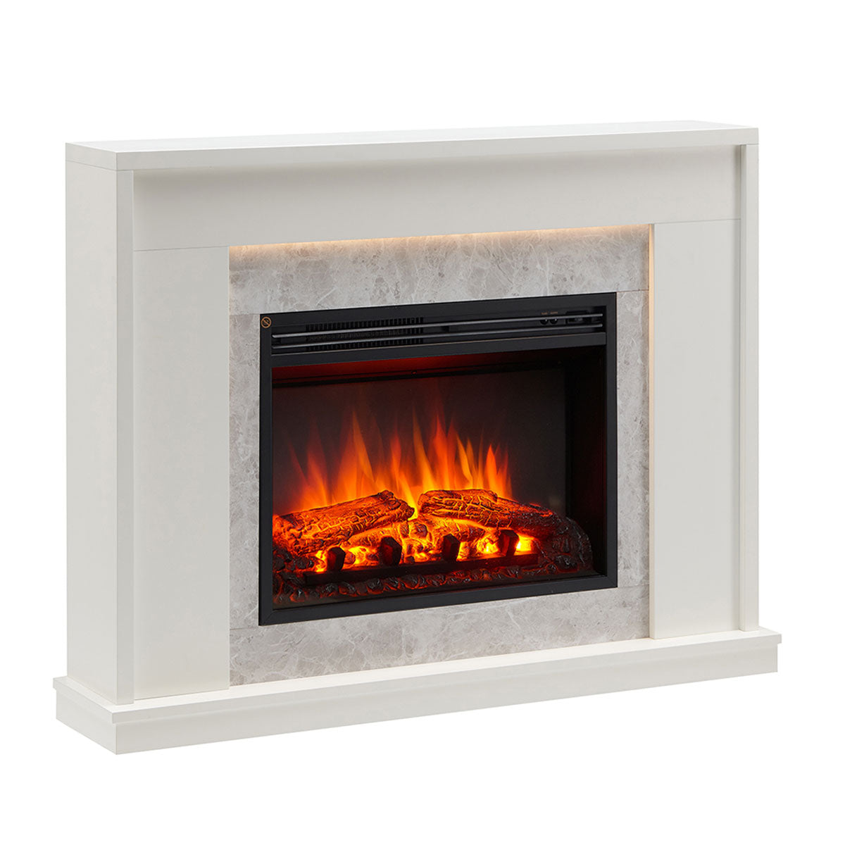 • Elegant Design: The Jade mantel, finished in a crisp white, features a luxurious marble veneer around the fireplace insert, elevating the look and feel of the entire suite. This sophisticated detail makes the Jade mantel a stylish and functional focal point in any room.