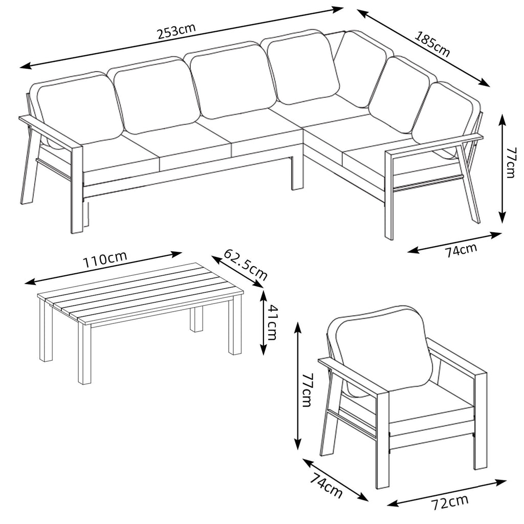 - Material: Powder-Coated Aluminium Frame, High-Density Foam Cushions, Outdoor Fabric Covers