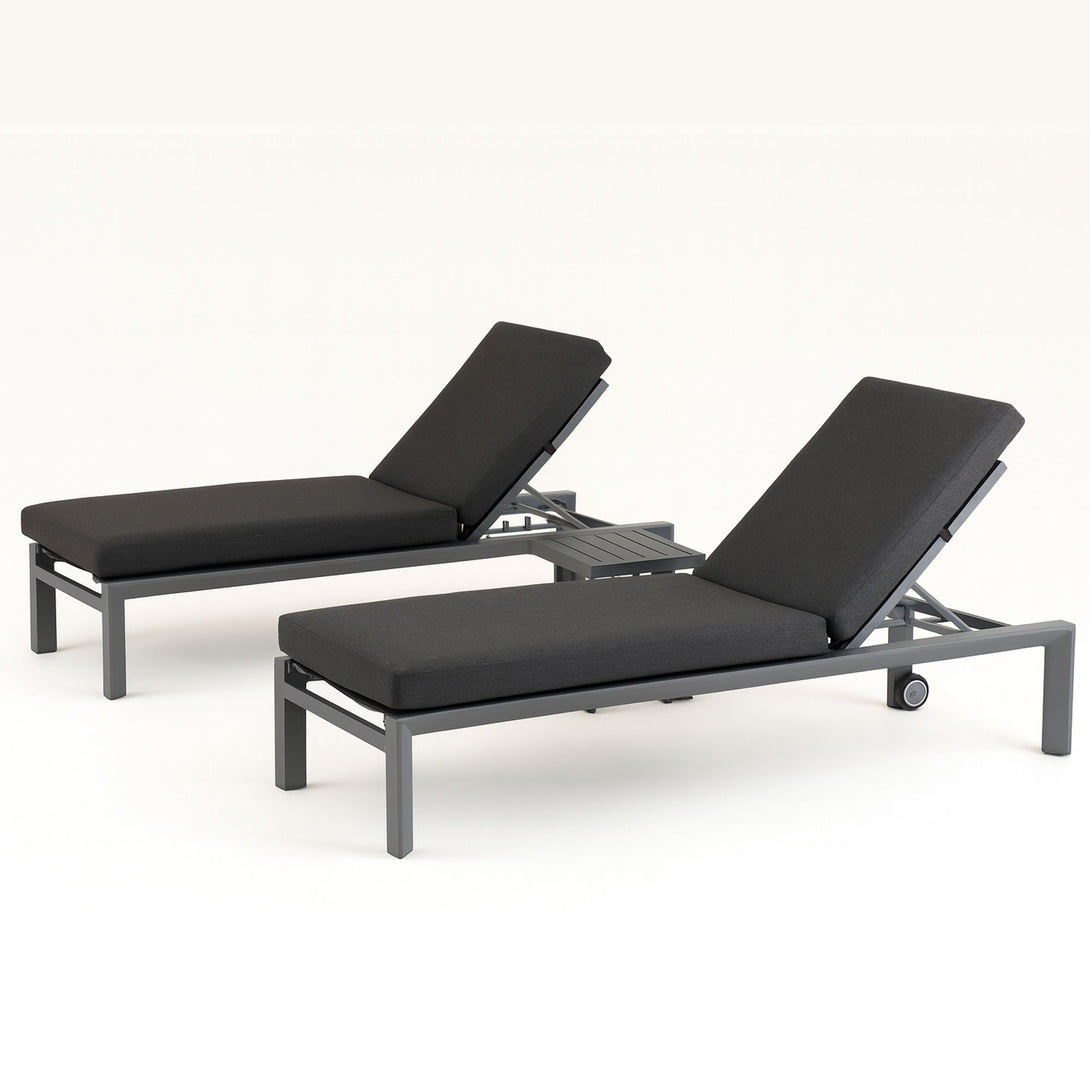 Kaya Duo Sun Lounge Set - Charcoal Aluminium Frame with Dark Grey Cushion