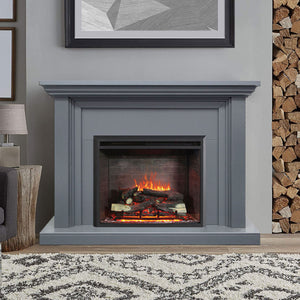 Kingsley 2000W Electric Fireplace Heater Grey Mantel Suite with 30" Primo Insert