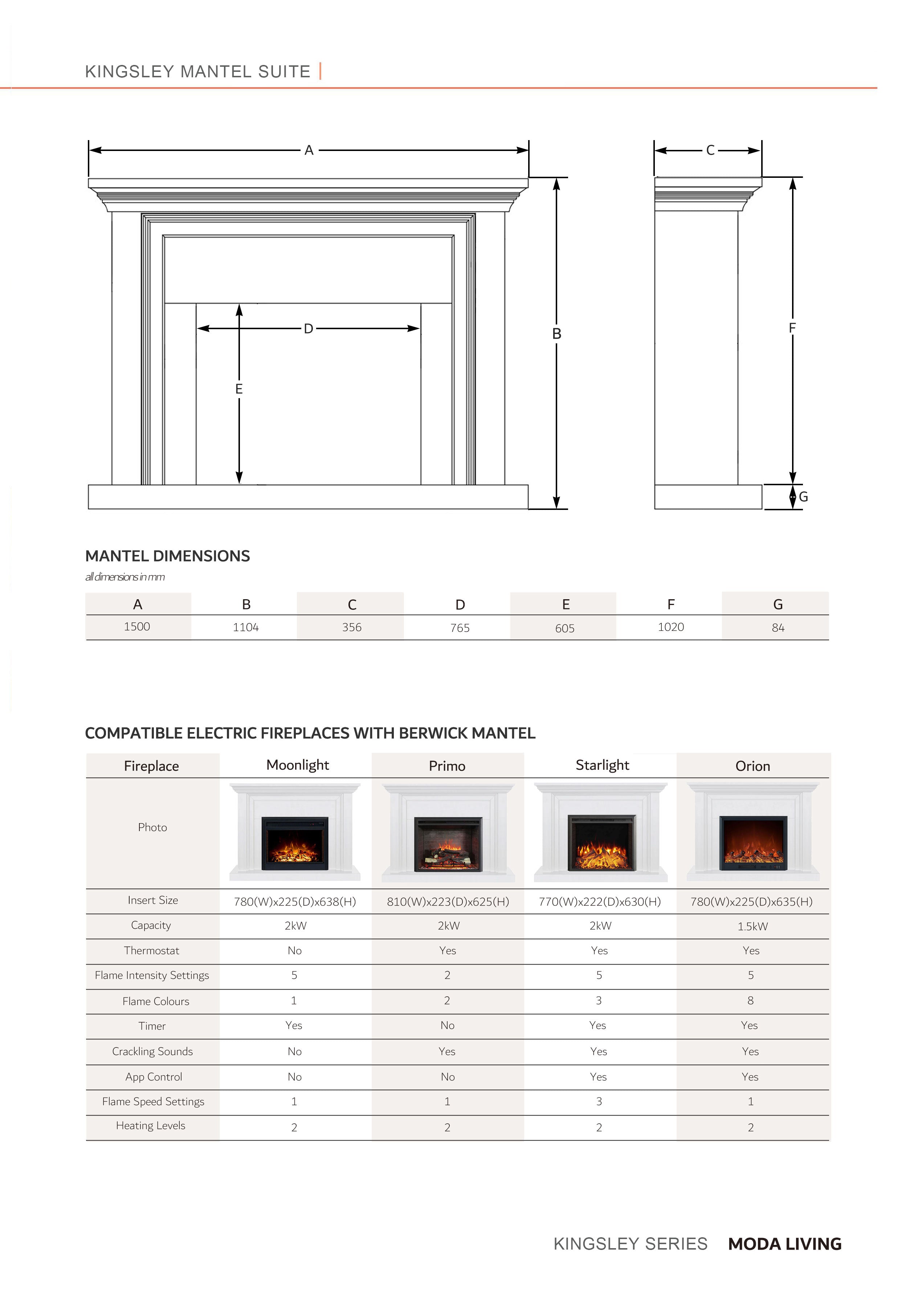 • Includes the KINGSLEY Mantel and 30 inch PRIMO Insert