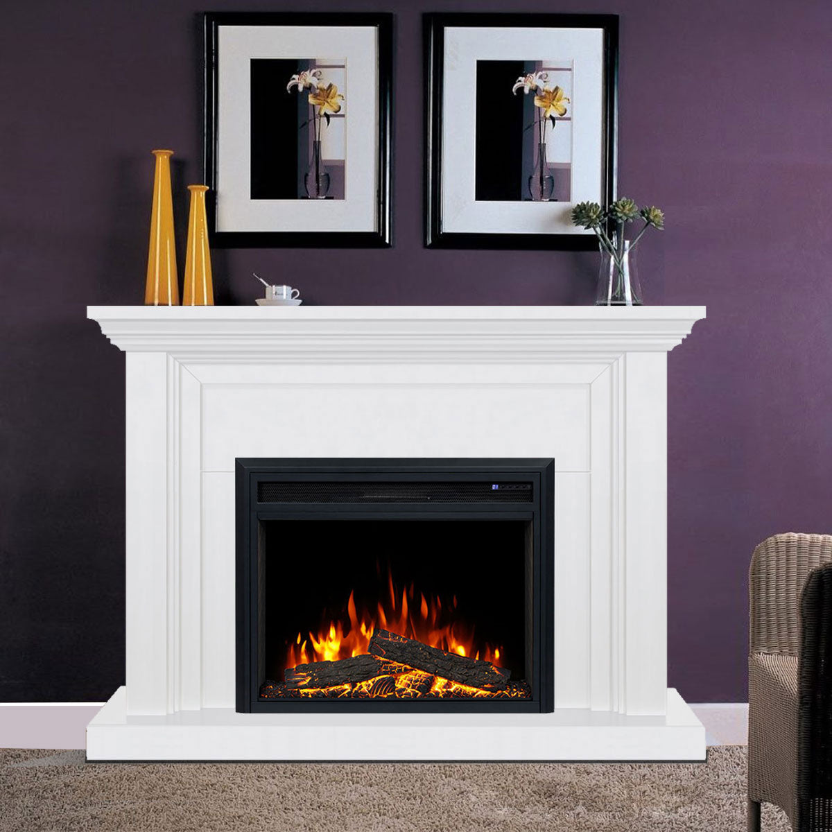 • This fireplace suite includes the KINGSLEY Mantel and 30-inch New Moonlight Electric Fireplace Insert
