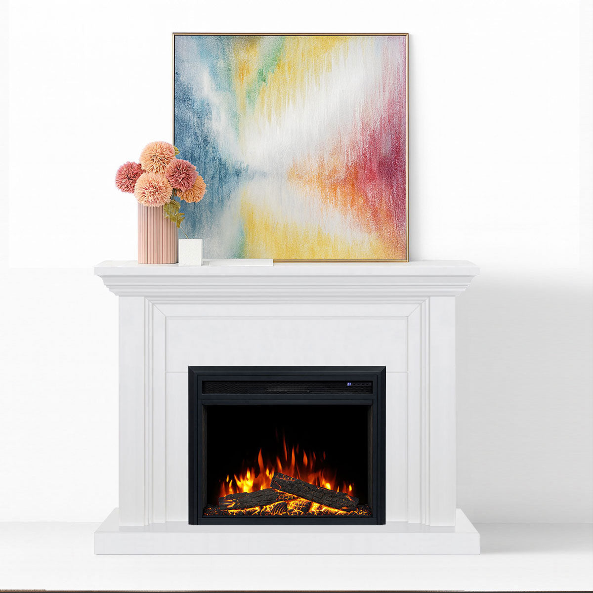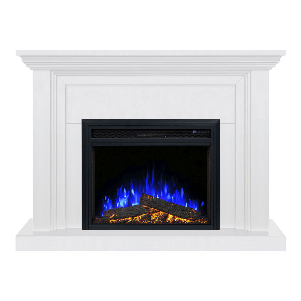 Elevate your living space with the Kingsley Electric Fireplace Suite, featuring a crisp white mantel beautifully paired with the upgraded 30" New Moonlight Insert. Enjoy a larger and more realistic flame display, six flame colours, adjustable ember bed lighting, flame speed options and crackling fire sound effects. With efficient 2000W heating, thermostat control, smartphone operation and a premium traditional mantel design, Kingsley brings warmth, ambience and elegance all year round.