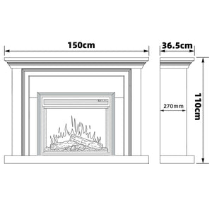 • Fireplace Suite Dimensions: 150W x 36D x 110H cm