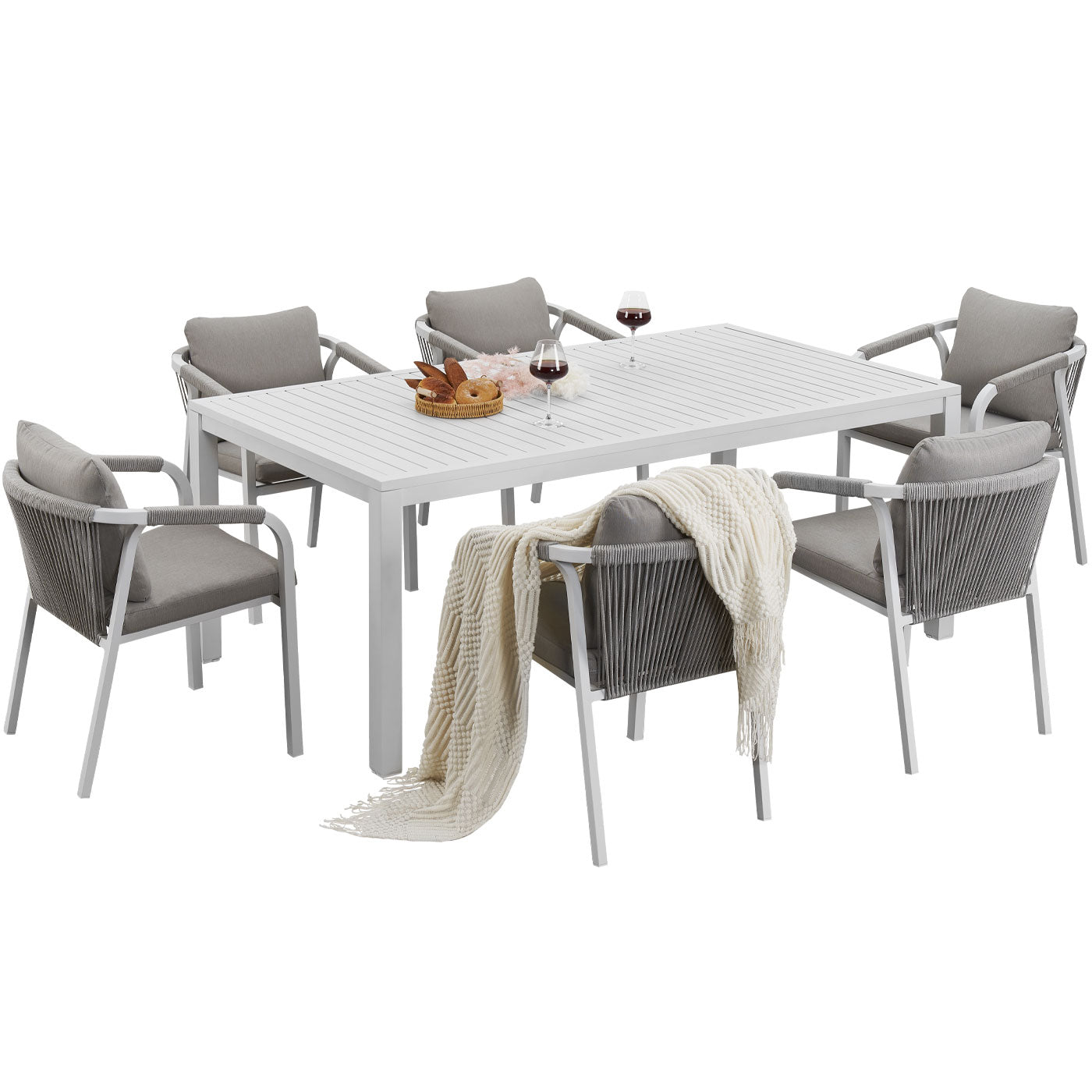 • Chair Material: Aluminium frame, Outdoor rope, High-density foam cushions, Fabric covers