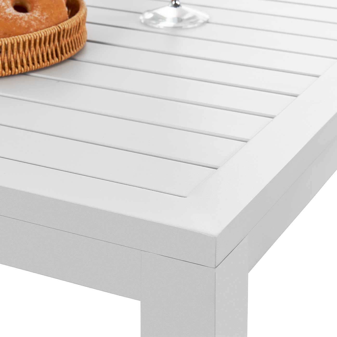 • Aluminium Slat Tabletop: Sleek slatted design improves drainage, reduces heat retention, and adds a clean modern aesthetic.