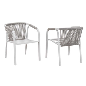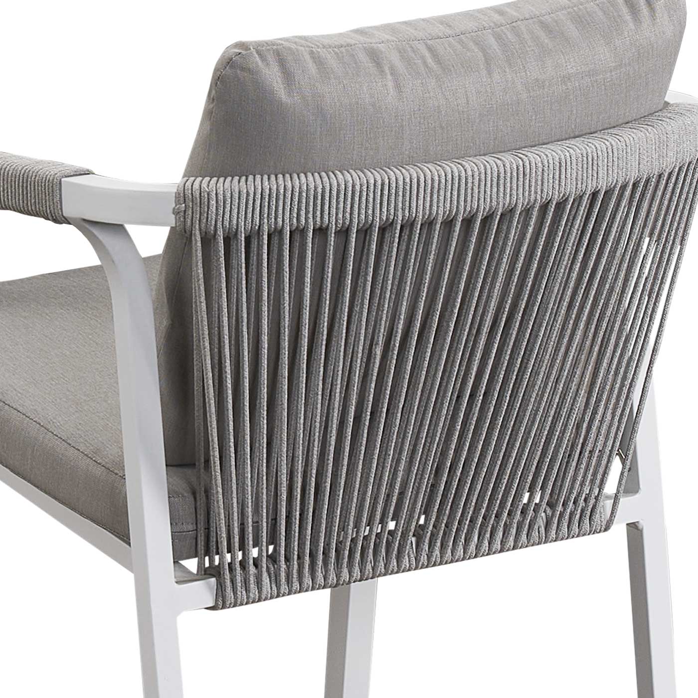 • Handwoven Rope Chairs: Each chair features tightly woven outdoor rope on the backrest for a refined look and supportive comfort.