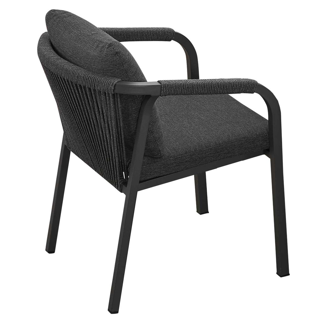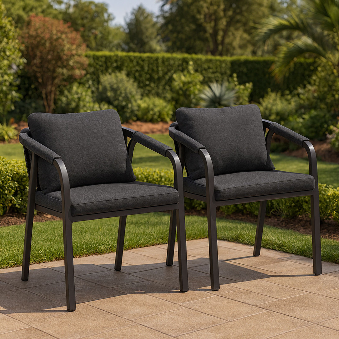 Elevate your outdoor dining space with the stylish and modern La Perouse Outdoor Dining Chairs. This set of 4 armchairs features a sleek charcoal aluminium frame paired with dark grey rope accents, creating a sophisticated look that blends durability, comfort, and contemporary outdoor elegance.