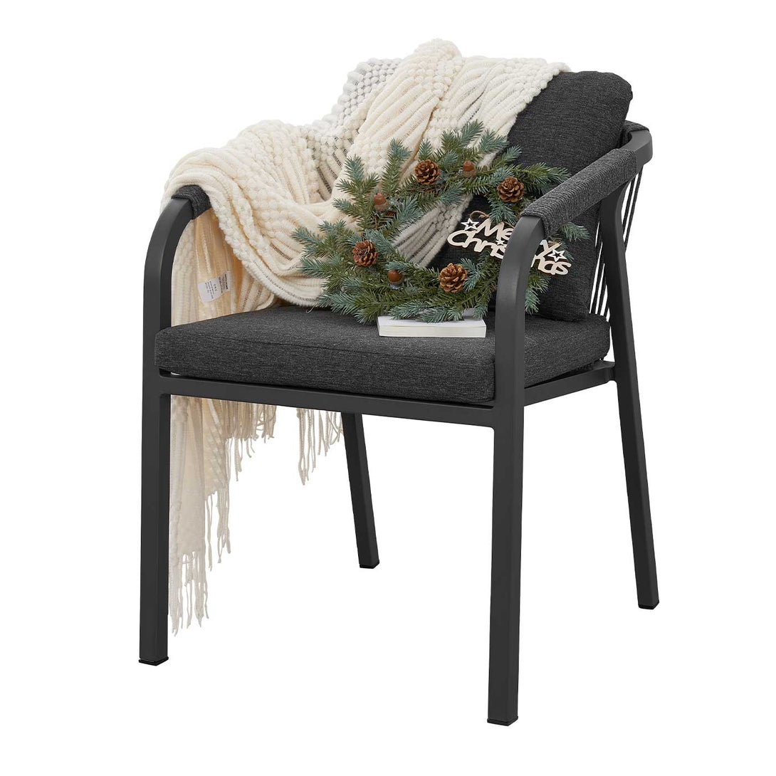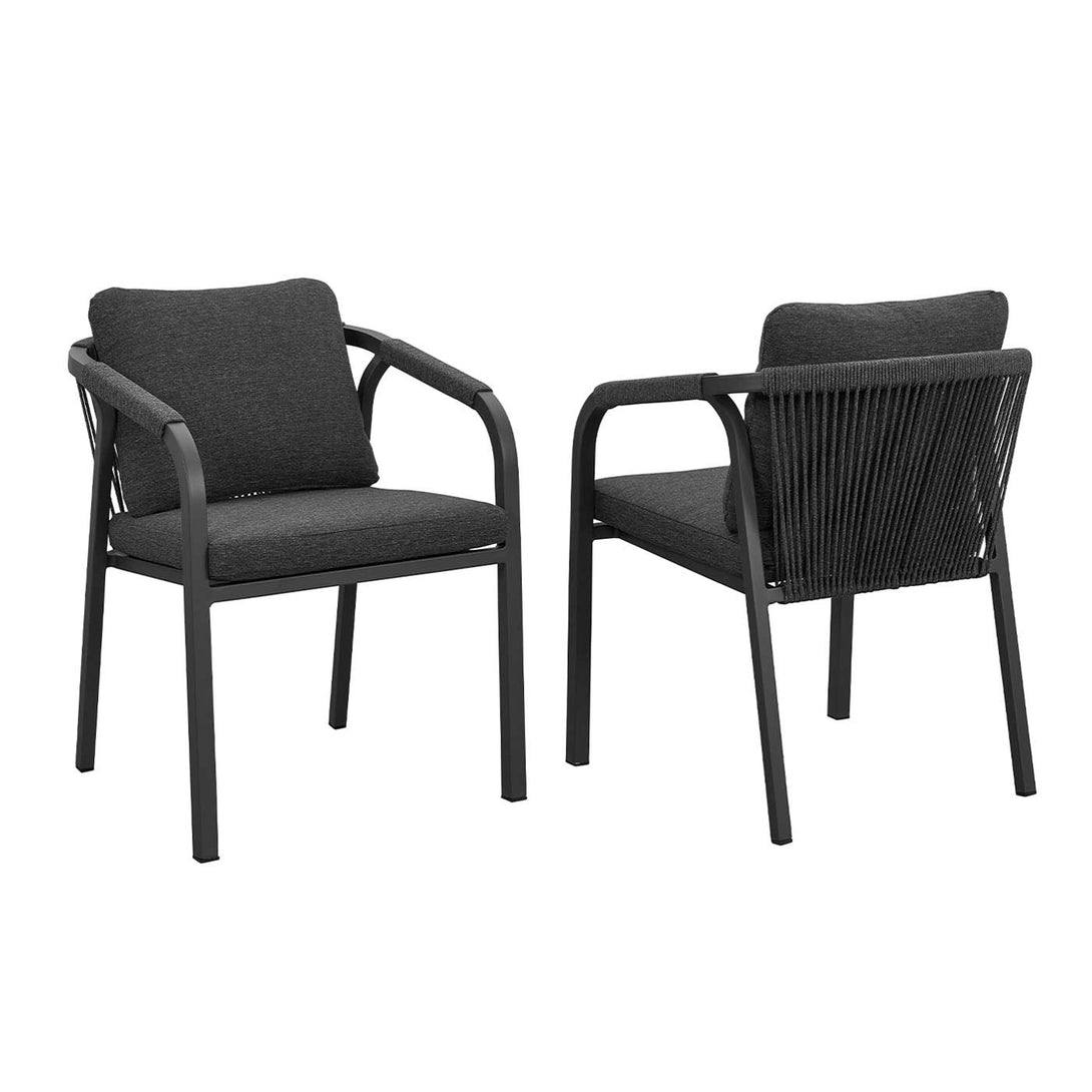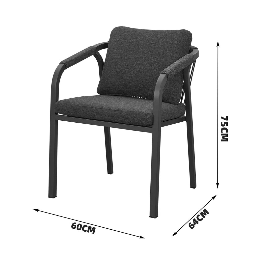 La Perouse Charcoal Aluminium Outdoor Dining Chairs with Arms – Dark Grey Rope and Cushions (Set of 4)