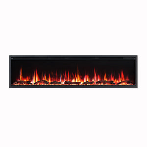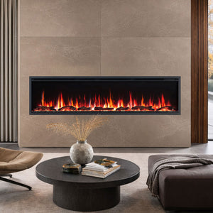 Lumina 72 Inch 1500W Electric Fireplace features an ultra-slim trim and near-frameless design that installs fully flush into the wall for a clean, modern finish. With 9 flame colours, customisable fuel bed lighting, My Flame memory, crackling sound, and smart control via Tuya app, remote, or touch panel, Lumina delivers both warmth and striking visual ambience in recessed, wall mounted, or freestanding setups.