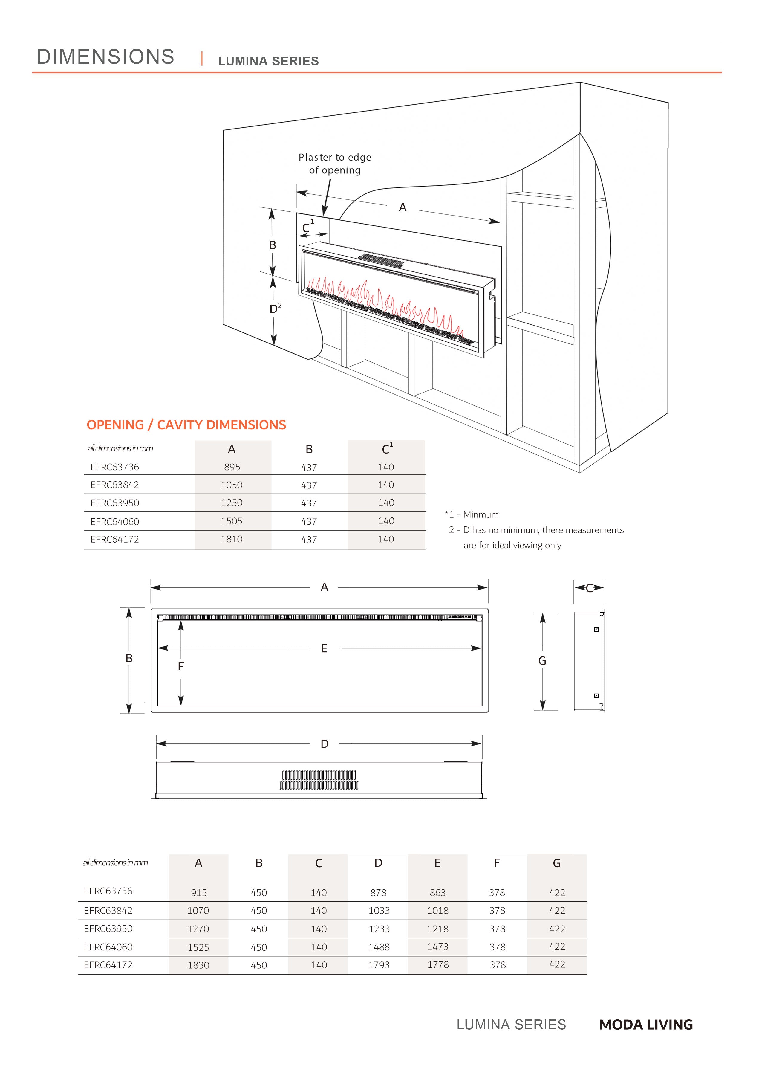 • Cavity Size (Recessed Minimum) - 181 cm (W) x 43.7 cm (H) x 15 cm (D)