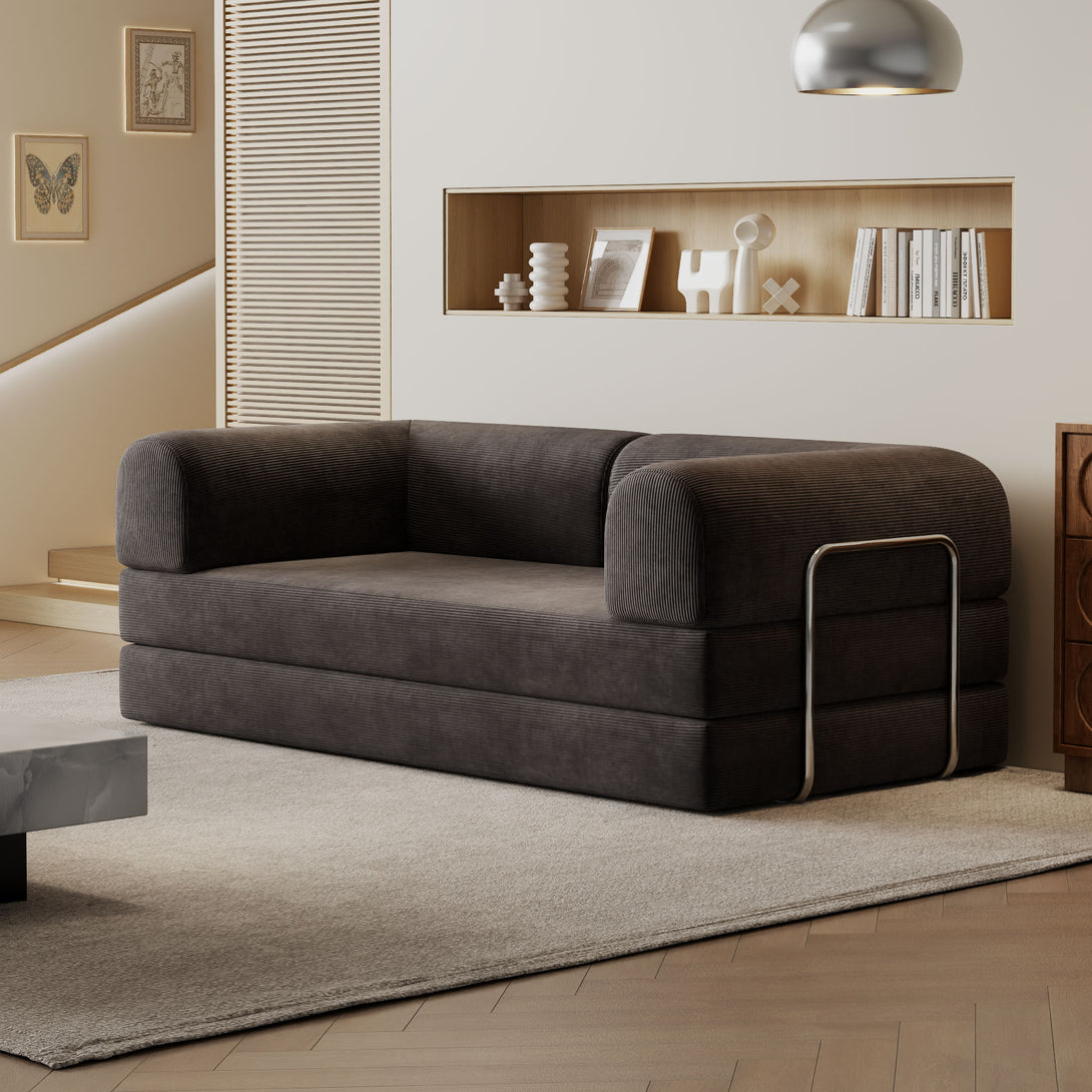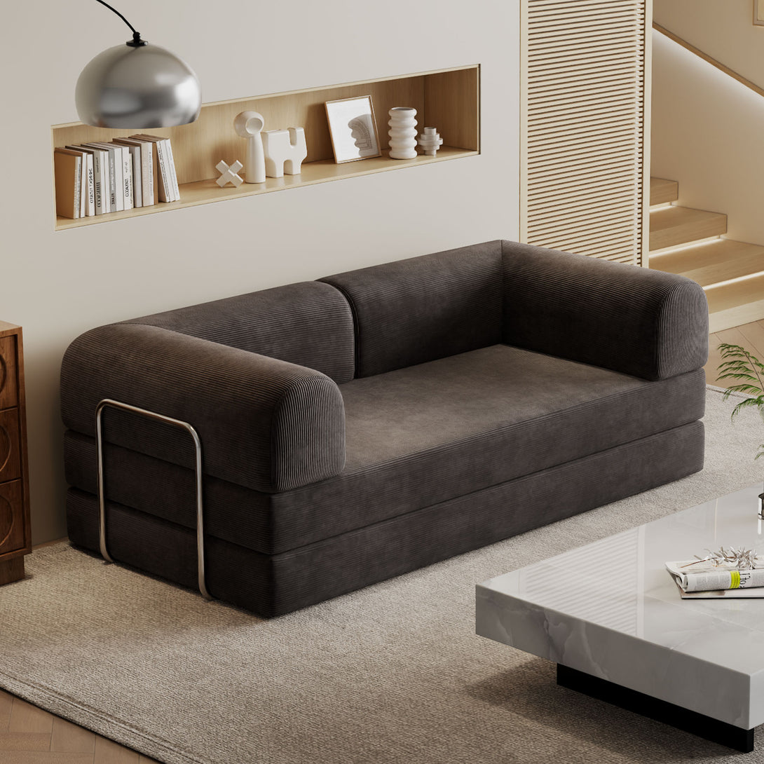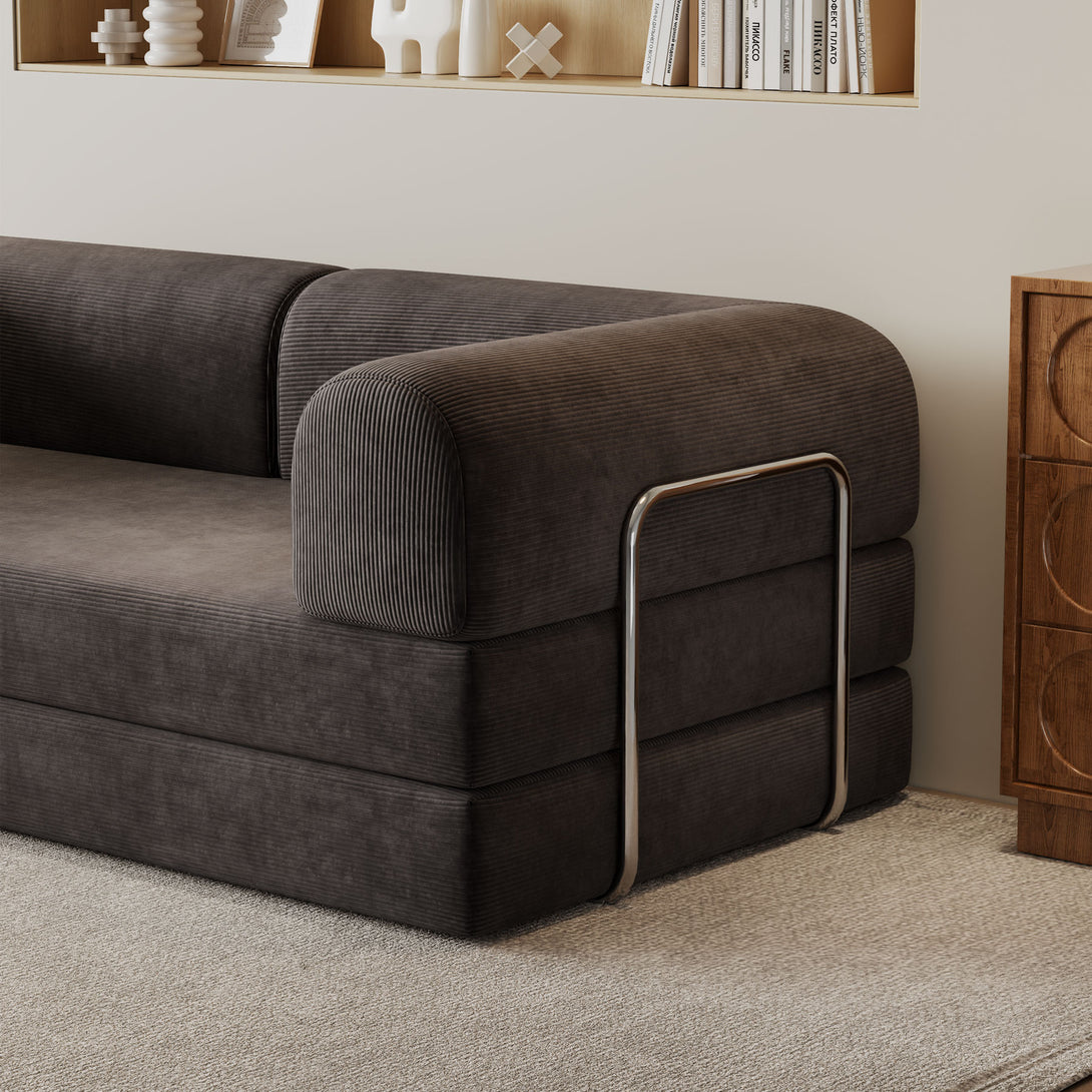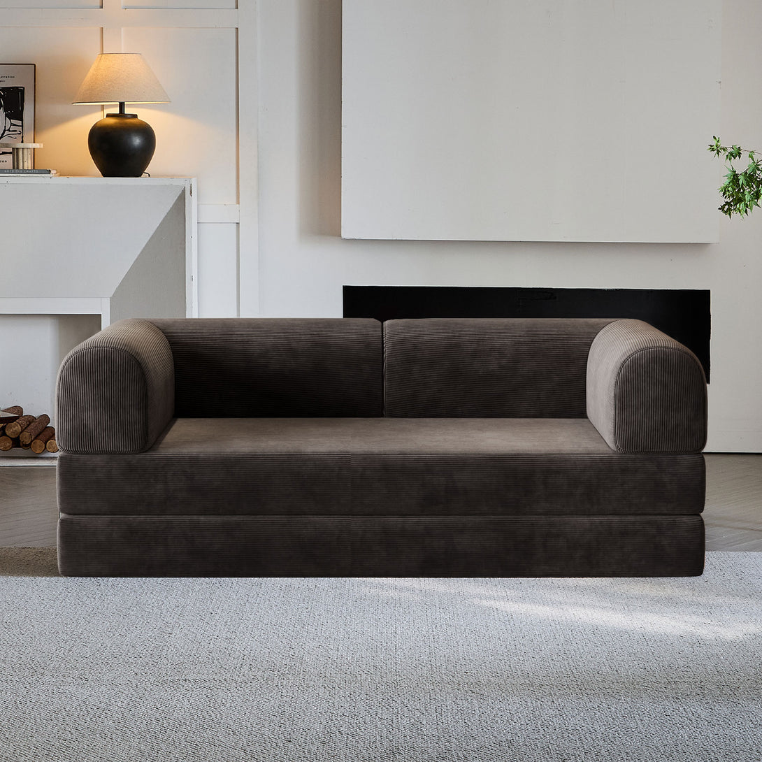 Malone Compression Sofa Bed – Convertible Corduroy Couch in Espresso Brown