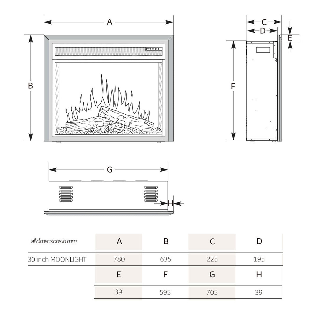The New Moonlight 30-Inch Electric Fireplace Insert combines a larger, clearer viewing area with advanced flame technology to create a beautifully realistic and customisable ambience. With upgraded flame colours, ember lighting, flame speed control, and smartphone operation, this new model brings a modern, immersive fireplace experience to any home.