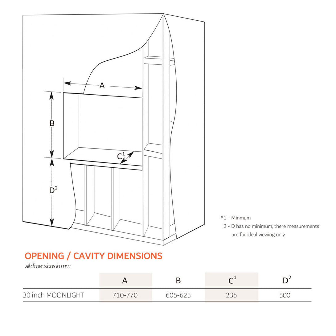 • Cavity Size: Width (720 - 770mm) x Height (600 - 630mm) x Depth (>230mm)