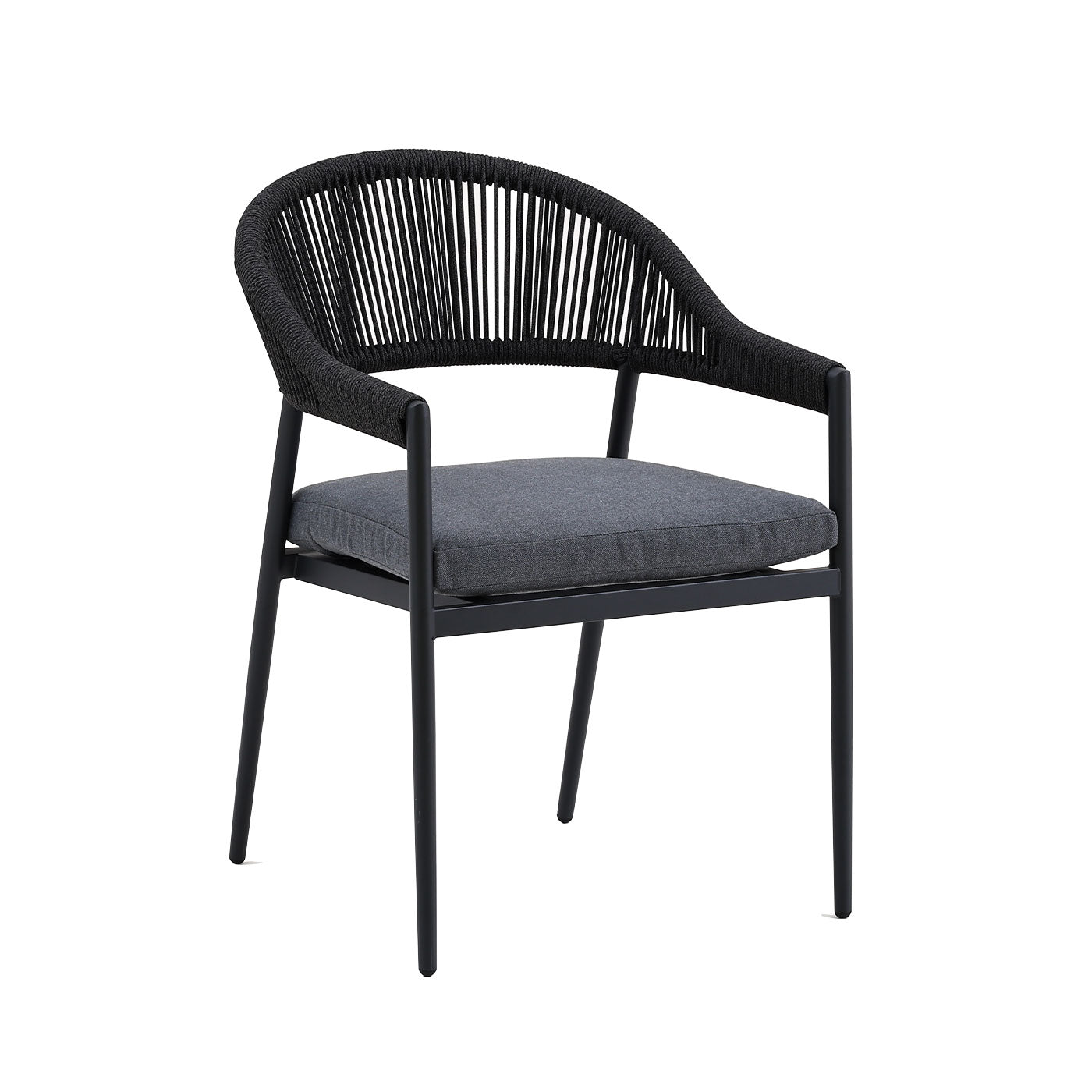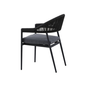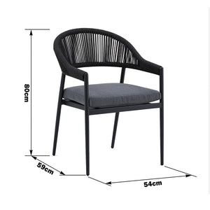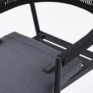 • Fraser Rope Chairs: Each chair features a sturdy charcoal aluminium frame with handwoven charcoal rope and plush dark grey cushions for relaxed, contemporary comfort.