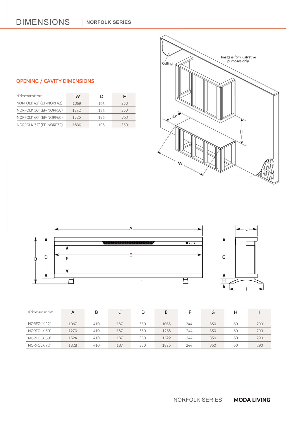 • Cavity Size (recessed): 152.6 cm (W) x 36.0 cm (H) x 19.6 cm (D) minimum depth