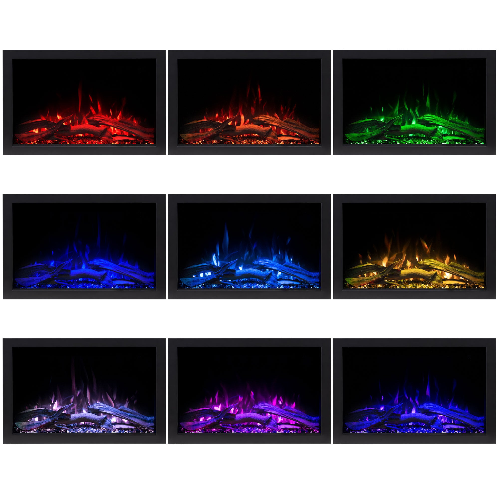 • Over 10 flame, ember bed, and downlight colors with auto-cycle option