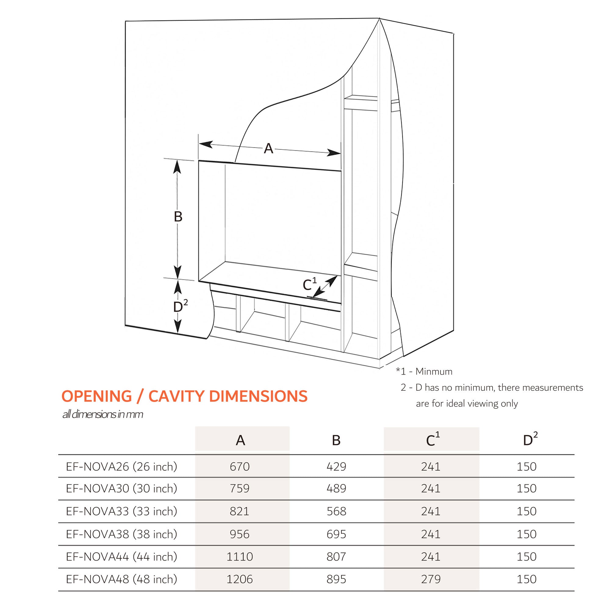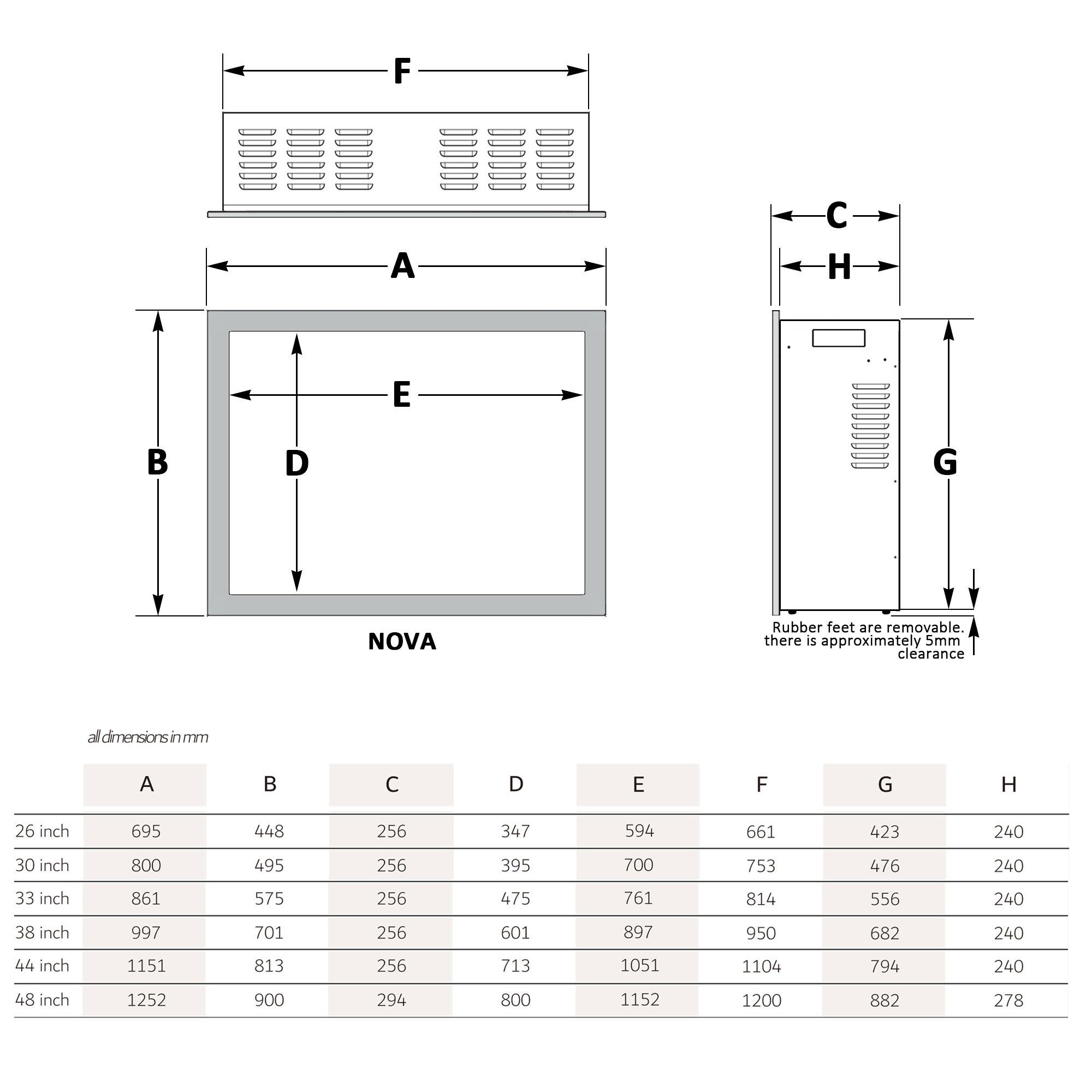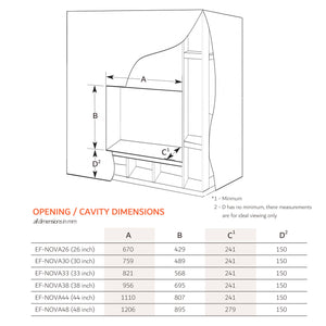 • Cavity Size: 821mm(Width) x 568mm(Height) x >241mm(Depth);