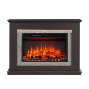 This fireplace suite includes the Opal Mantel in Espresso Oak with a luxurious marble veneer around the fireplace insert, and the 27 inch Stella Electric Fireplace Insert. The perfect blend of modern functionality and timeless design, this suite brings warmth, ambiance, and elegance to any room.