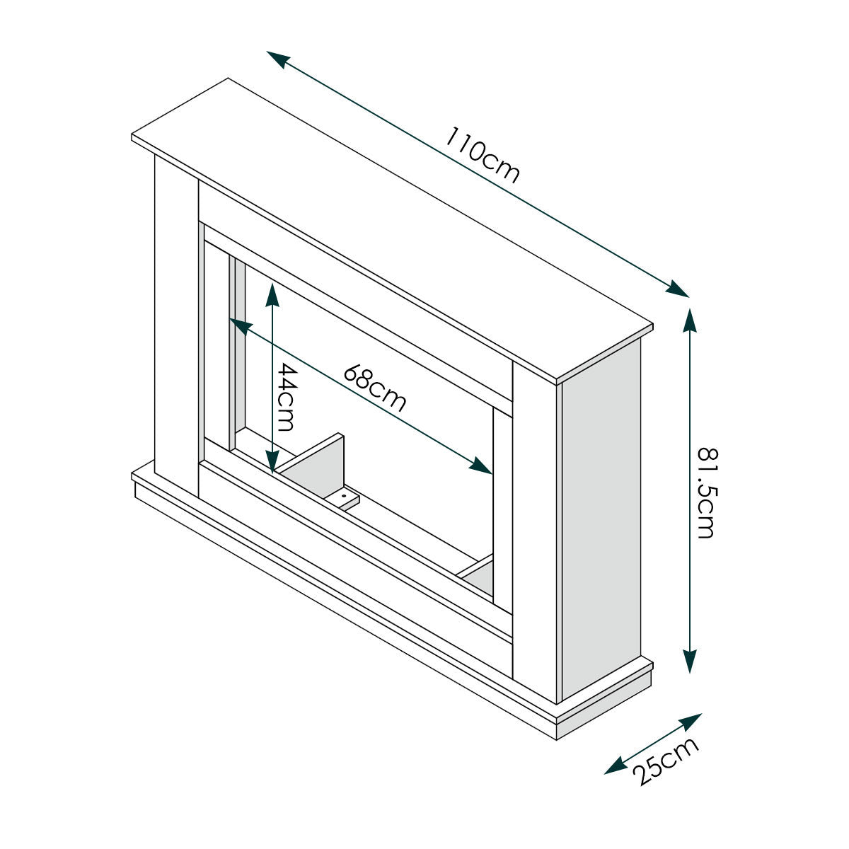 • Fireplace Suite Dimensions: 110cm (W) x 25cm (D) x 81.5cm (H)