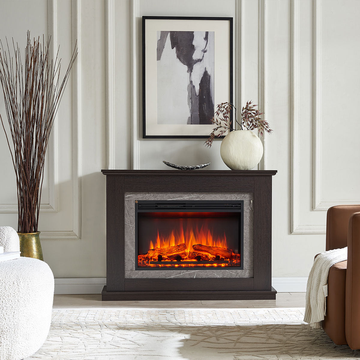 • Elegant Design: The Opal mantel, finished in Espresso Oak with a wood grain texture and veneer finish, features a luxurious marble veneer around the fireplace insert. This sophisticated detail elevates the look and feel of the entire suite, making it a stylish and functional focal point in any room.