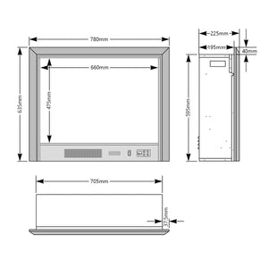 • Product: 780mm (Width) x 635mm (Height) x 225mm (Depth)