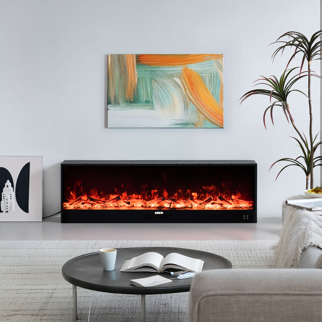 The Orion 60" Electric Fireplace Heater combines advanced smart features with a bold, panoramic flame display to elevate any interior space. Designed for seamless installation into custom joinery or as a standalone feature, it offers both warmth and ambience with refined style. The realistic 3D flame, crackling sound effect, and app-based controls bring a modern, luxurious atmosphere to your home.