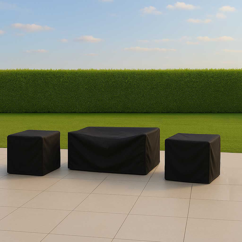 Protect your Paris 4 Seater Aluminium Sofa Lounge Set with our custom-fit rain cover, designed to ensure longevity and maintain the sleek appearance of your outdoor furniture. This rain cover is crafted to fit perfectly over your lounge setting, including the two-seat sofa and the 2 single seats, safeguarding them from the elements.