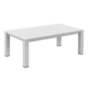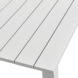 The Paris 5 Seater White Aluminium Sofa Lounge Set features a durable white aluminium frame, plush high-density cushions and a matching slatted aluminium coffee table, creating a modern and comfortable outdoor living space.