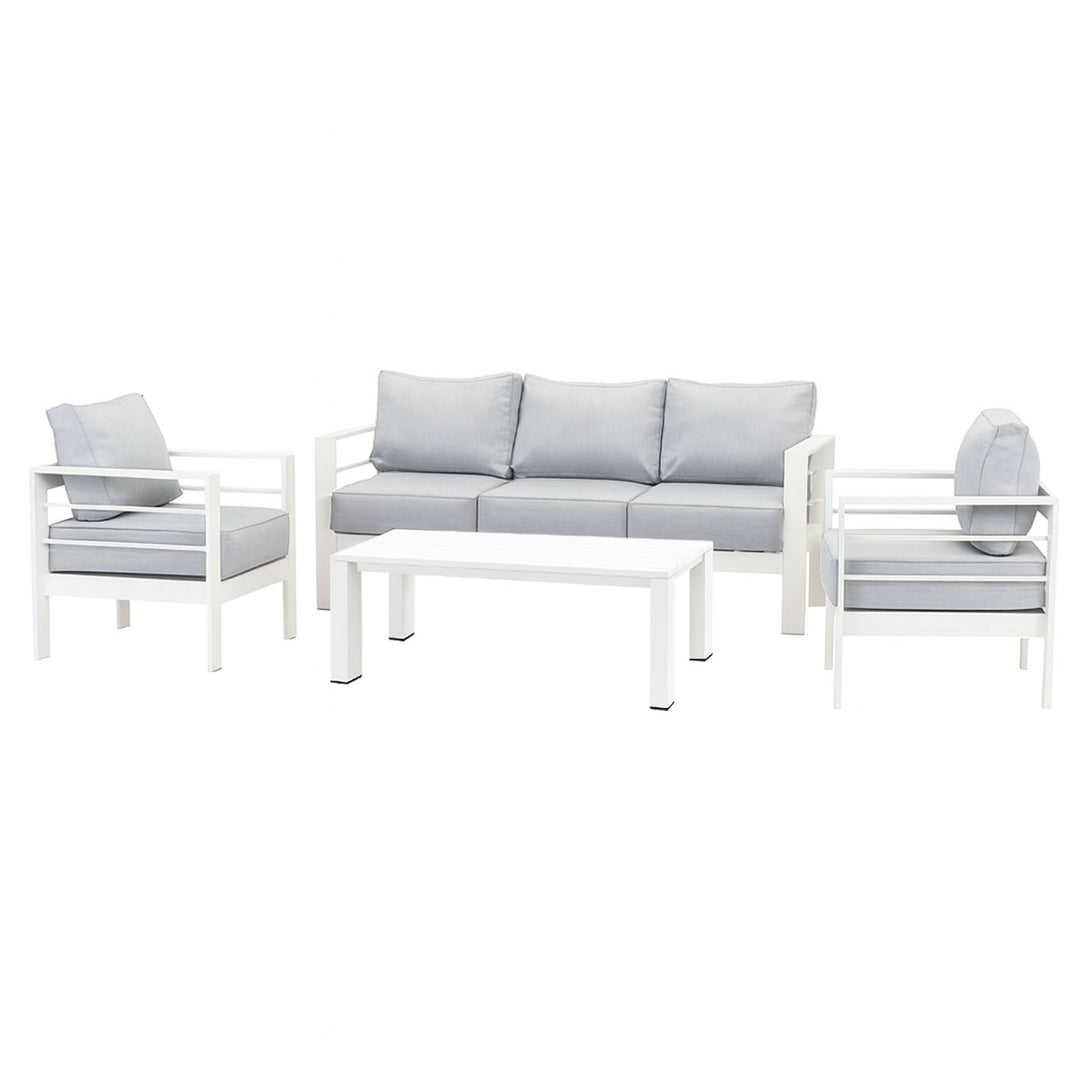 Paris 5 Seater White Aluminium Sofa Lounge Set - Light Grey Cushion