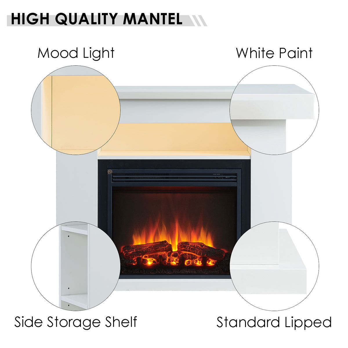 Quartz 2000W Electric Fireplace Heater White Mantel Suite