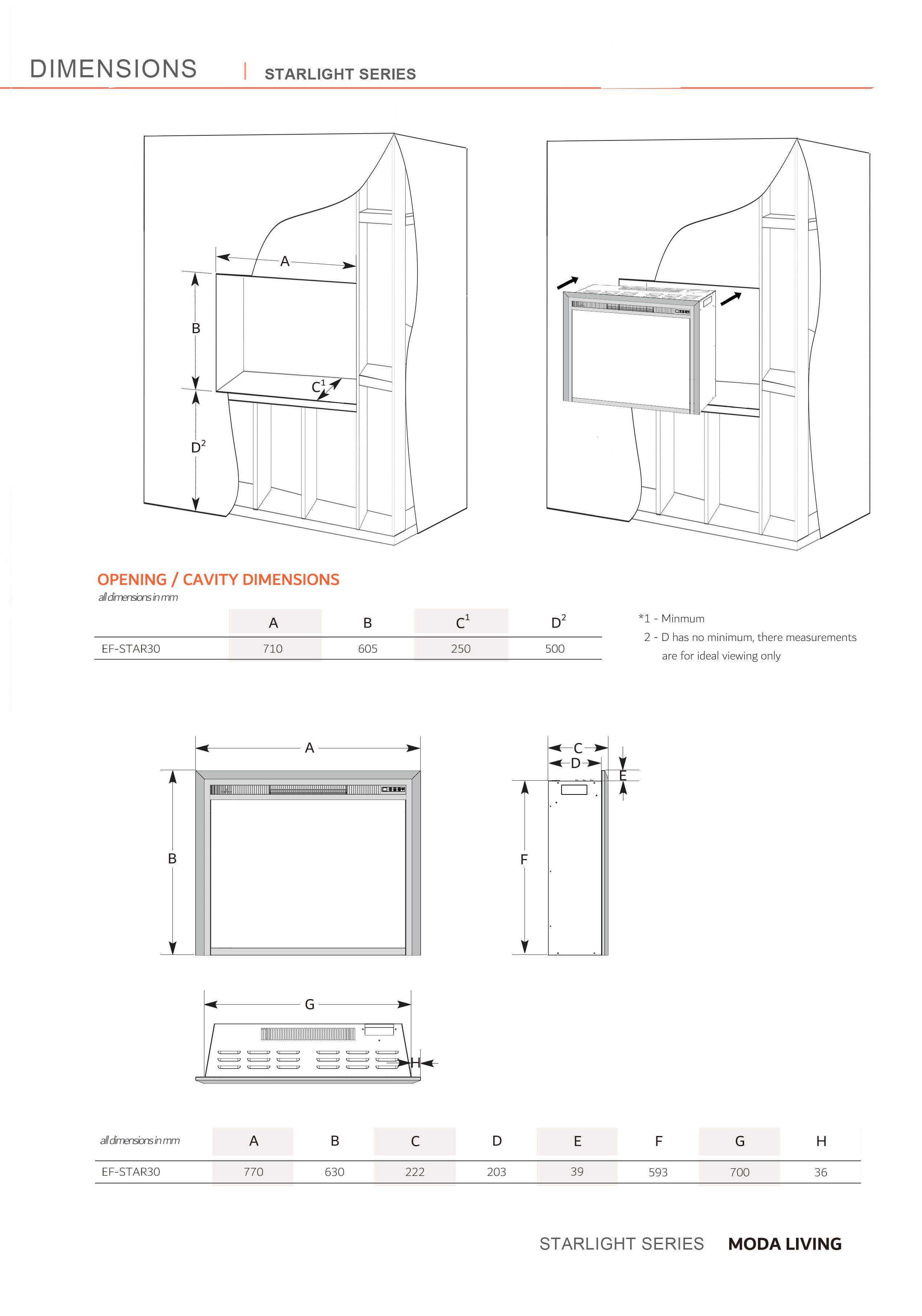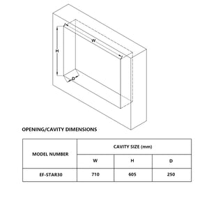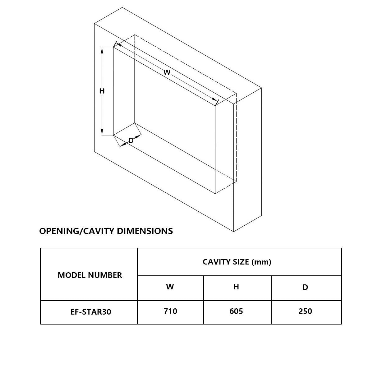 • Cavity Size: Width (710-760mm) x Height (605-620mm) x Depth (>230mm);